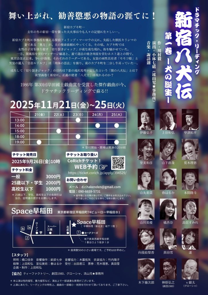 「新宿八犬伝 第一巻-犬の誕生-」に神原弘之出演いたします。